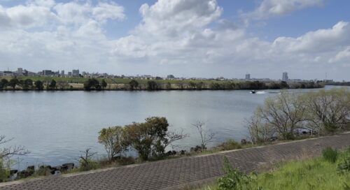 高台からは江戸川を一望でき、天気が良い日にはとても気持ちのいい景色が広がります。桜と川のコントラストは写真映えも抜群です。