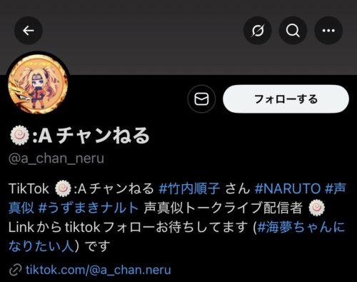 声真似ファンやNARUTOファンにとって、AチャンねるさんのTikTokは見逃せないアカウントです。