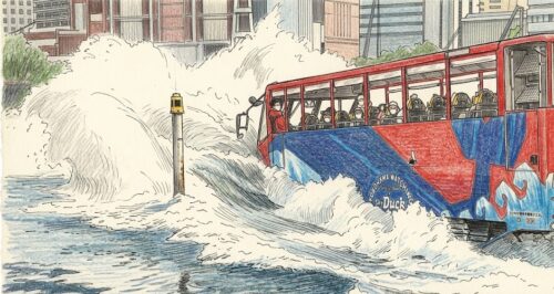 陸と水上の両方を走行できる“水陸両用バス”です。